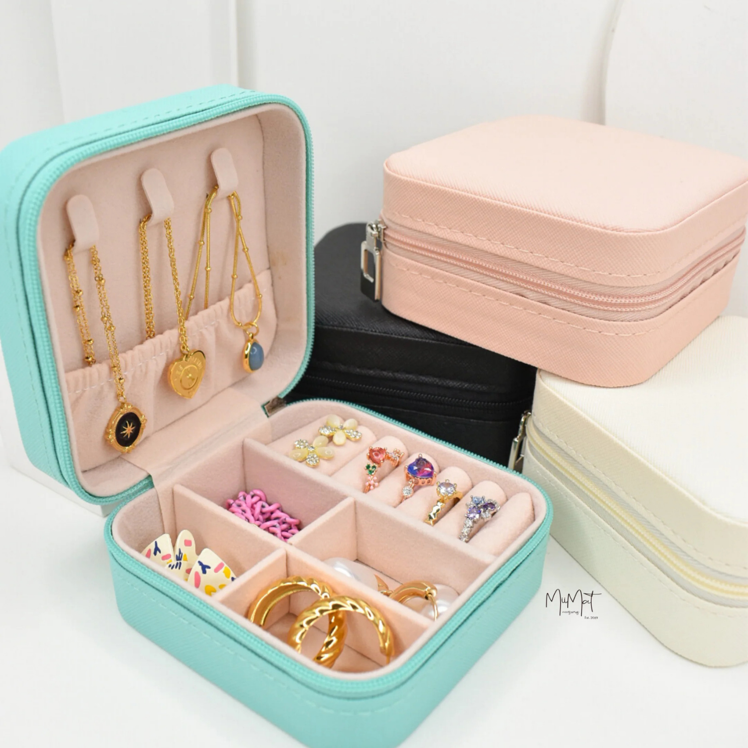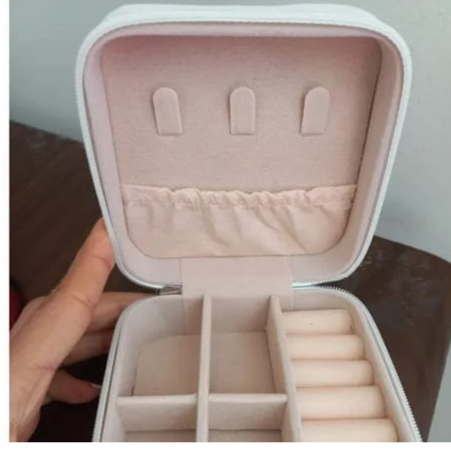El interior está hecho de vellón con cuentas para proteger las joyas de la fricción.